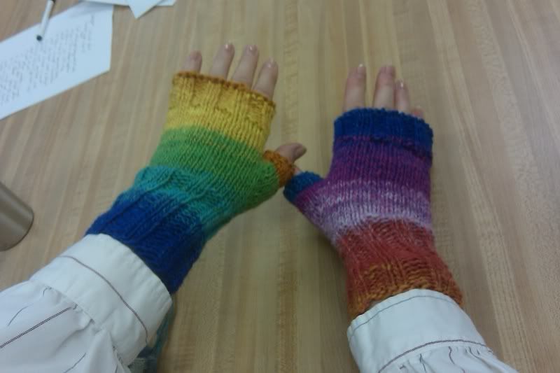 Nov. 30th, 2011 02:18 pmOMG, you all have no idea how happy I am right now! I *just* finished my TWELFTH pair of knitted/crocheted ... thingies. You can call 'em fingerless gloves, muffatees, wristies, hand warmers, whatevers! I FINISHED THEM!